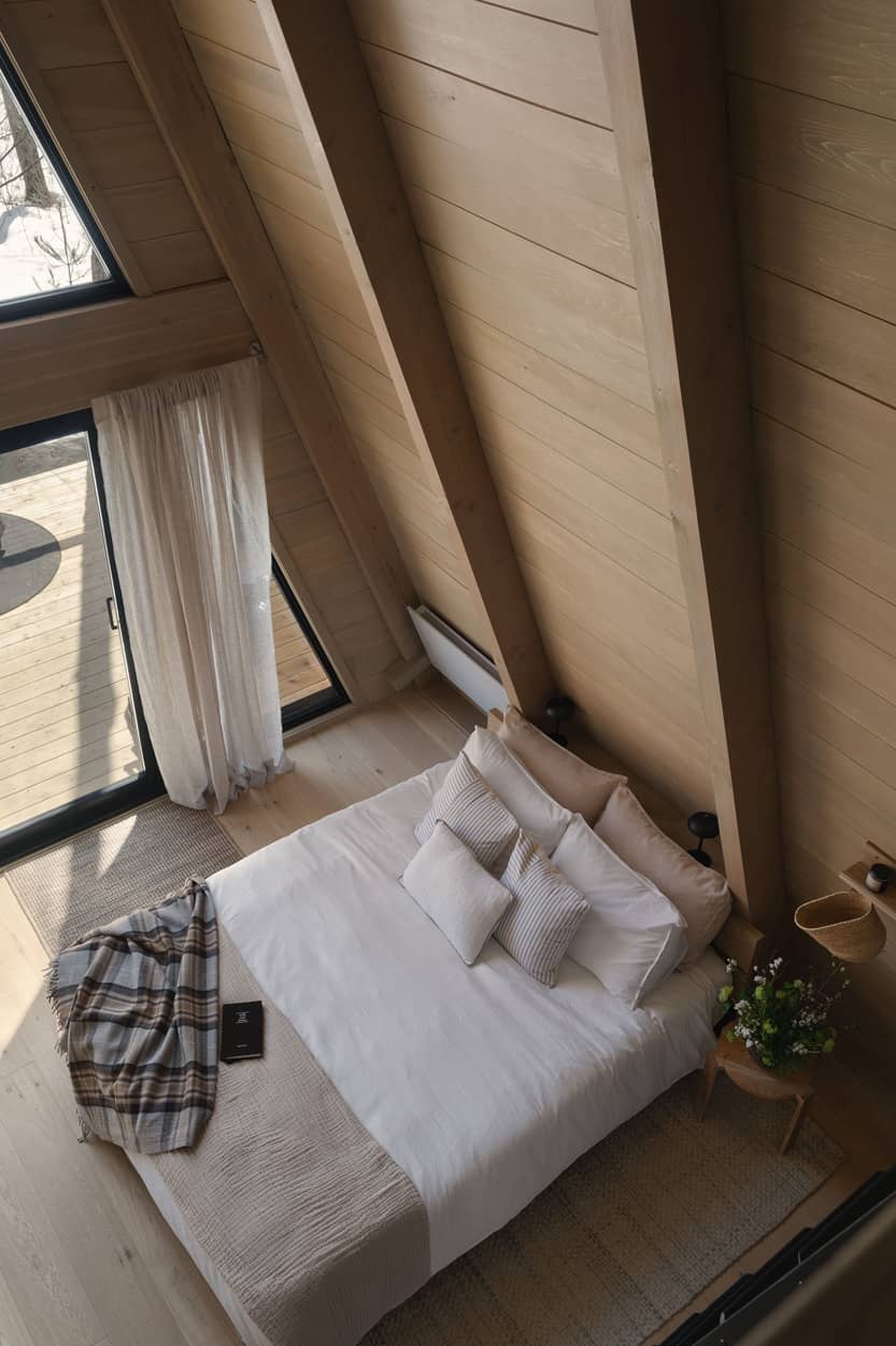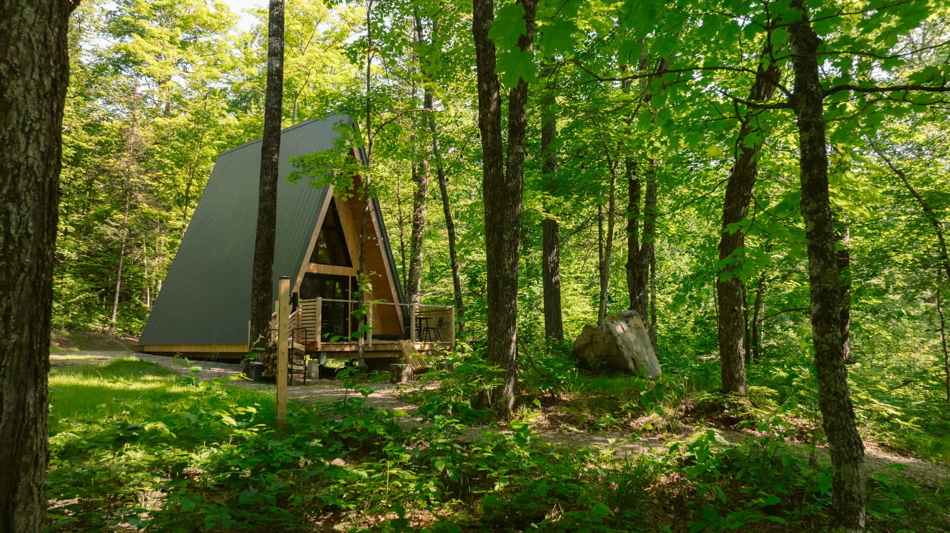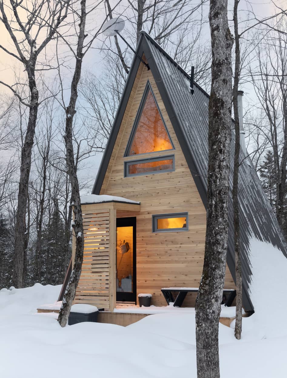 Les Chalets Prunella misent sur une expérience d’immersion profondément ressourçante quelle que soit la saison. En été, on arpente les sentiers qui se faufilent à travers la forêt, on se rafraîchit au lac ou et on profite des équipements nautiques fournis gratuitement. Les soirées se prolongent autour d’un feu de camp, sous le ciel étoilé. À l’automne, le décor s’empourpre, se prêtant à de délicieuses balades contemplatives. L’hiver réinvente de fond en comble le domaine d’une trentaine d’hectares, ouvrant la voie aux sorties en raquettes et au ski de fond. Avec leur design scandinave et leur conception à faible impact qui les fondent littéralement dans leur environnement, les Chalets Prunella se font nids douillets après une journée à jouer dans la nature. Tout est là, en toute simplicité, pour décrocher vraiment et respirer.