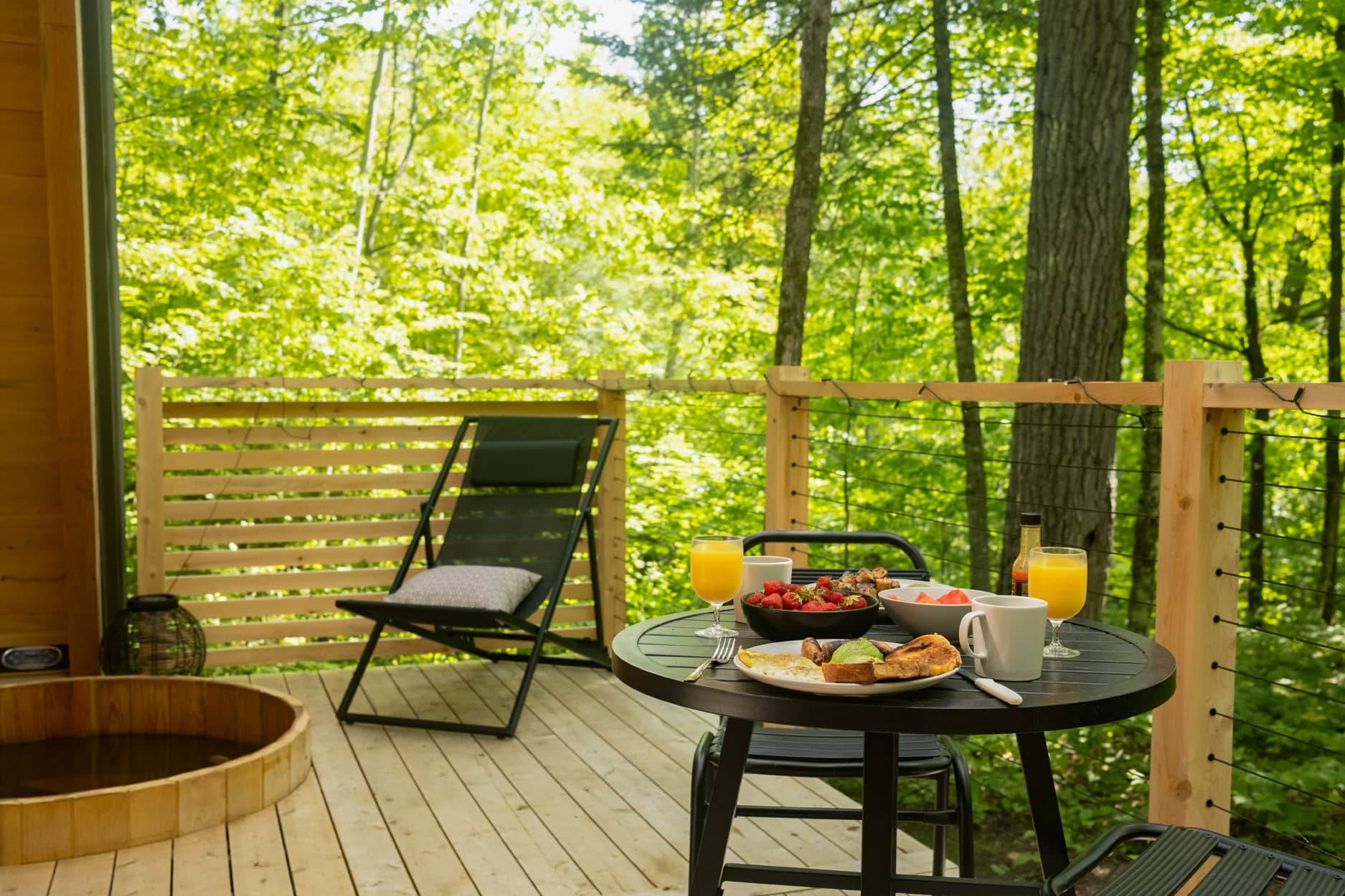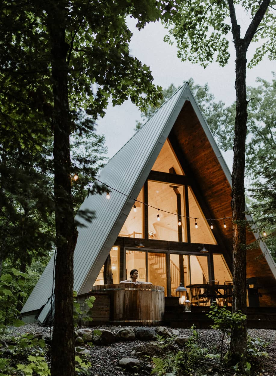 À un peu plus d’une heure de Gatineau-Ottawa, dans l’Outaouais, entre collines boisées, rivières et lacs qui serpentent au cœur d’une nature préservée, les Chalets Prunella vous invitent à devenir l’hôte des bois sans renoncer au confort et à l’élégance d’un hébergement entièrement pensé pour les amoureux du design et du bien-être. En harmonie avec leur environnement, ces chalets se distinguent par leur architecture contemporaine, tous construits avec des matériaux durables comme le pin rouge et le cèdre blanc local. Leur superficie généreuse permet d’accueillir de deux à quatre invités dans une ambiance à la fois épurée et chaleureuse: fenêtres pleine hauteur et le plafond cathédrale pour admirer la forêt, cuisine aux équipements haut de gamme, salle de bains moderne avec douche à l’italienne, literie au top du confort, grande terrasse extérieure pour se détendre au chant des oiseaux, foyer extérieur et spa privé en cèdre…