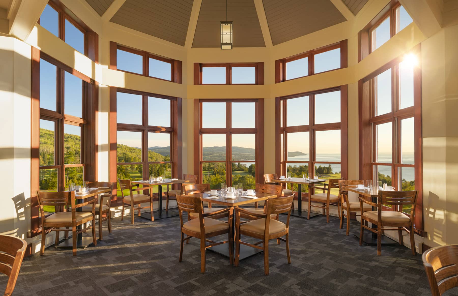 Entre deux aventures, les hôtes du Manoir goûtent sans entrave à la dolce vita signée Fairmont, que celle-ci soit synonyme de repos dans les chambres ou de détente et de mieux-être dans les magnifiques piscines et bains à remous intérieurs et extérieurs, à la salle de sport dernier cri de l’hôtel, ou encore dans les installations du Moment Spa, sous les mains expertes des massothérapeutes. Épatante, l’offre de restauration du Fairmont Le Manoir Richelieu vient compléter ce tableau propice au ressourcement et au plaisir. Sous la houlette du directeur culinaire Christophe Annerose, pas moins de deux tables gastronomiques de haut vol, Le Saint-Laurent et le Bellerive, célèbrent au quotidien la richesse du terroir de Charlevoix en magnifiant des produits régionaux et de saison. Tout comme au bar La Brise, on se régale autant de la vue que des assiettes et des cocktails.