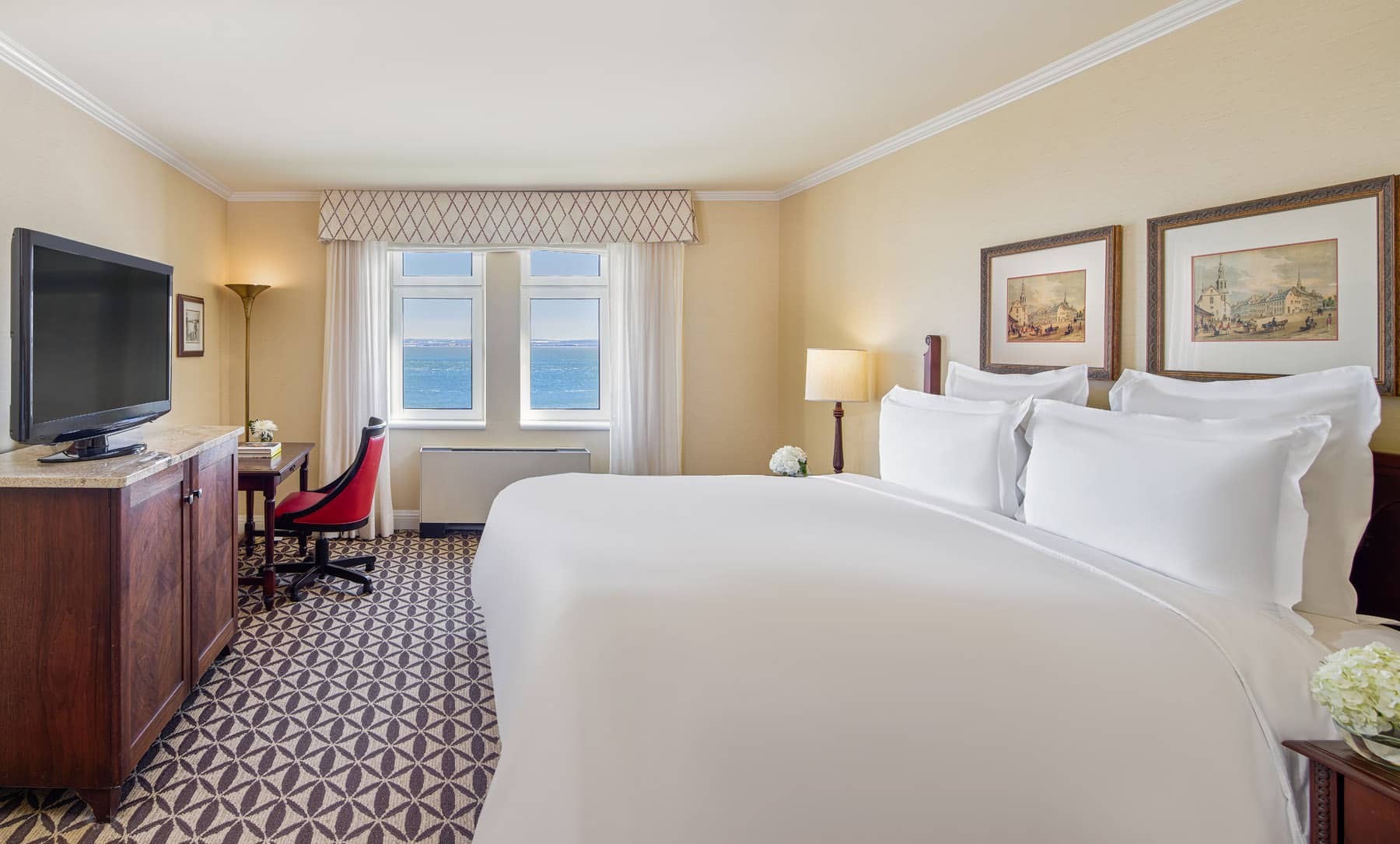 Hissée sur les falaises de Pointe-au-Pic, à La Malbaie, son altière silhouette de style Château toise le Saint-Laurent depuis près d’un siècle. Imaginé dès 1898 comme un établissement de standing destiné aux croisiéristes, le Manoir sera entièrement reconstruit en 1929 à la suite d’un incendie. Depuis lors, ses 405 chambres et suites haut de gamme se disputent l’une des plus belles vues sur le fleuve de tout le Québec, à l’instar de son célèbre « cousin » de Québec (à 90 minutes de route), Fairmont Le Château Frontenac. De son tête-à-tête somptueux avec la nature charlevoisienne, Fairmont Le Manoir Richelieu tire un programme d’activités de plein air dont il a l’exclusivité. Grande tyrolienne, via ferrata de 600 mètres aménagée à même la falaise, golf sur un sublime parcours de 27 trous dominant la baie, croisières aux baleines, motoneige, raquette, pêche blanche, ski dans les stations de la région… le menu est quasiment illimité et couvre toutes les saisons, sans négliger les tentations du Casino de Charlevoix, le voisin immédiat du Fairmont Le Manoir Richelieu.