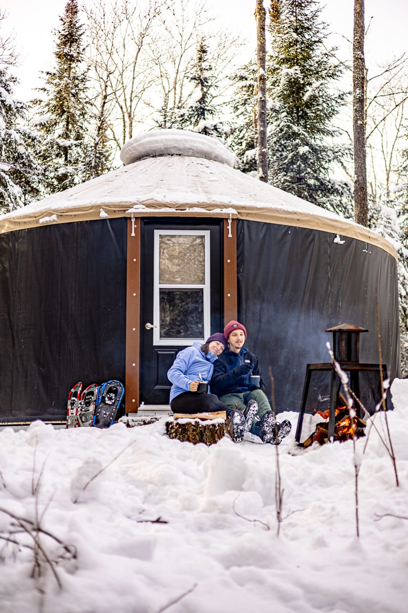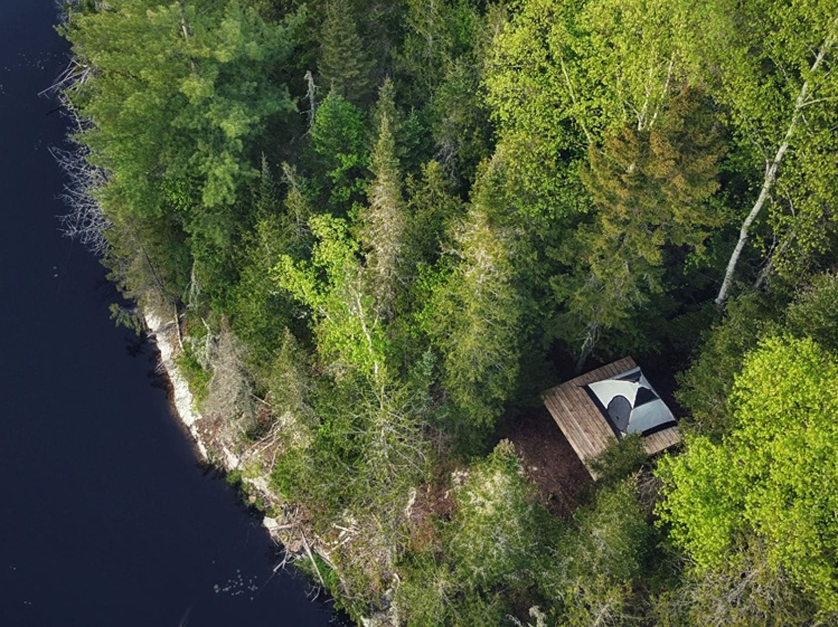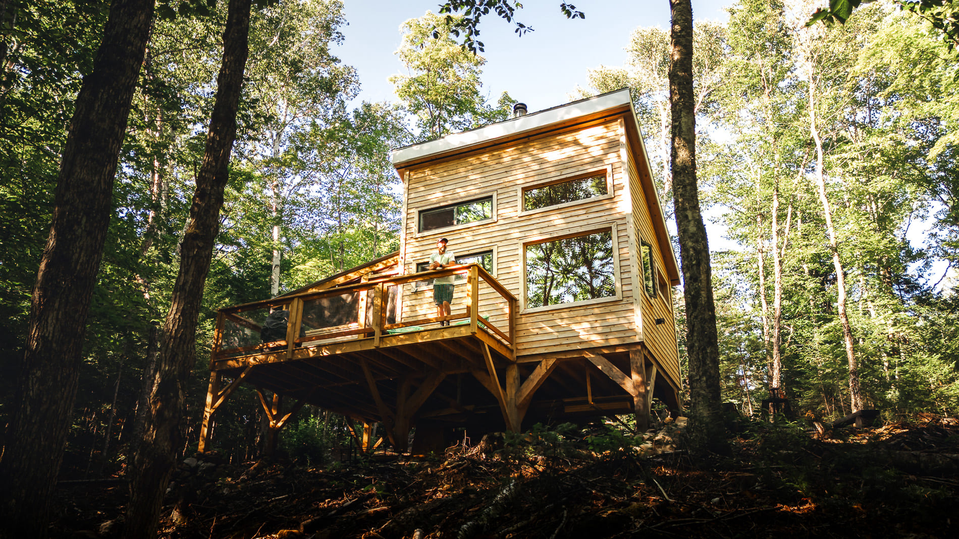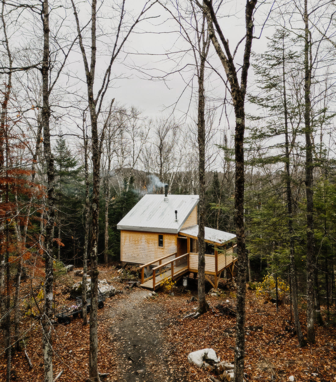 Le Lièvre Rouge propose différents types d’hébergement, tous conçus pour se fondre harmonieusement dans la forêt. Les micro-chalets se présentent comme des cabines compactes, minimalistes, pouvant accueillir trois ou quatre personnes. Leur cachet rustique va de pair avec un confort apprécié, sans oublier les équipements nécessaires à un séjour en autonomie. Chaque cabine est alimentée par l’énergie solaire, chauffée au poêle à bois et/ou au propane et dispose de sa réserve d’eau potable. Le Lièvre Rouge propose également un magnifique spot de camping en surplomb du lac Amik, ainsi qu’une yourte pour séjourner en toute intimité (4 personnes) au cœur de la forêt, tout près du lac Manseau. Tout est pensé pour ralentir le rythme et faire corps avec la nature des Hautes-Laurentides : la magie d’un séjour au Lièvre Rouge.