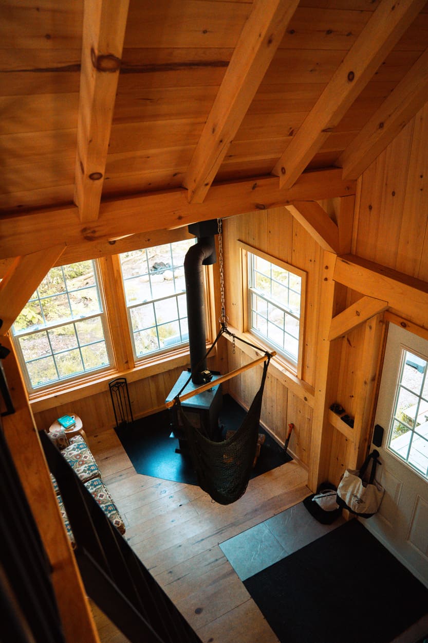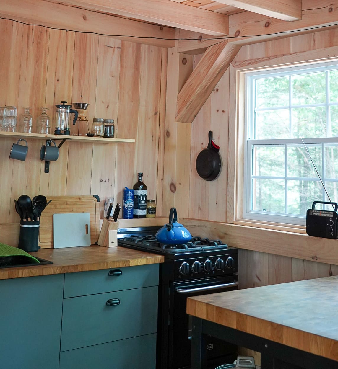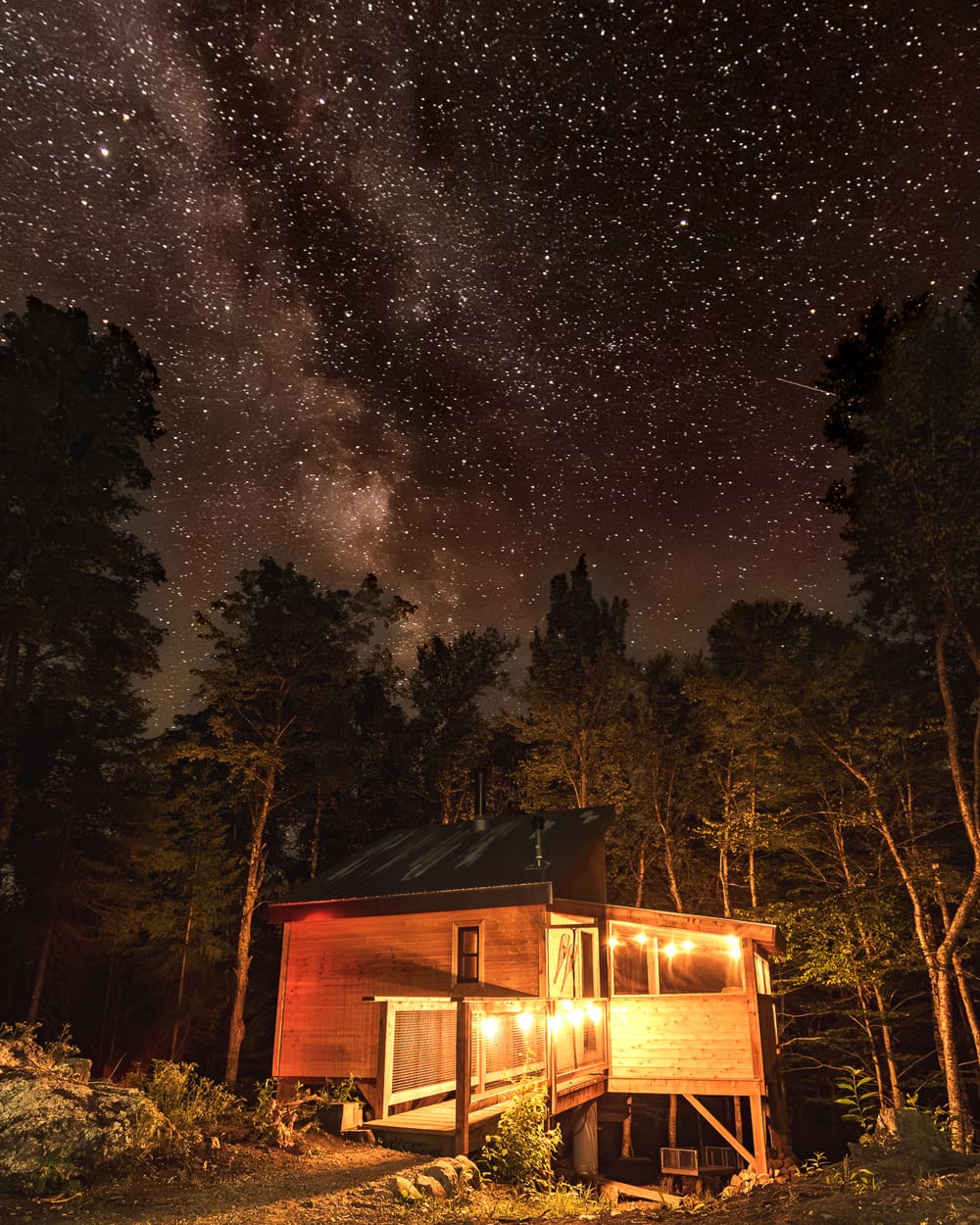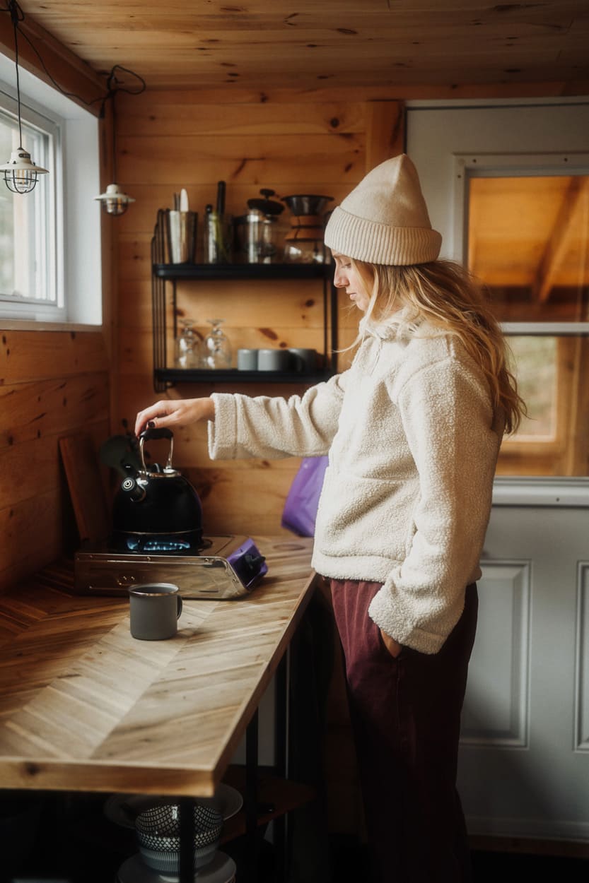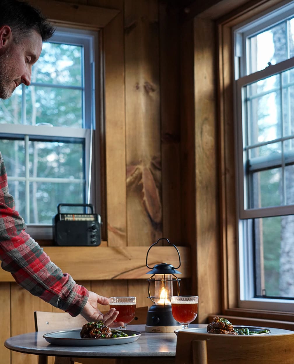 Le Lièvre Rouge propose différents types d’hébergement, tous conçus pour se fondre harmonieusement dans la forêt. Les micro-chalets se présentent comme des cabines compactes, minimalistes, pouvant accueillir trois ou quatre personnes. Leur cachet rustique va de pair avec un confort apprécié, sans oublier les équipements nécessaires à un séjour en autonomie. Chaque cabine est alimentée par l’énergie solaire, chauffée au poêle à bois et/ou au propane et dispose de sa réserve d’eau potable. Le Lièvre Rouge propose également un magnifique spot de camping en surplomb du lac Amik, ainsi qu’une yourte pour séjourner en toute intimité (4 personnes) au cœur de la forêt, tout près du lac Manseau. Tout est pensé pour ralentir le rythme et faire corps avec la nature des Hautes-Laurentides : la magie d’un séjour au Lièvre Rouge.