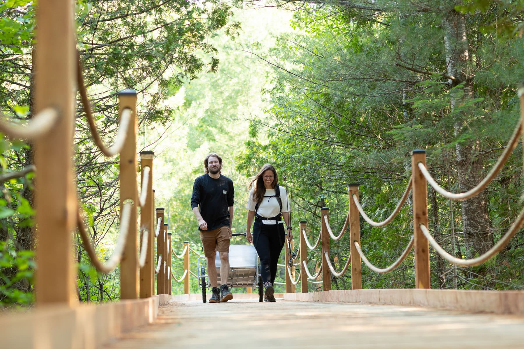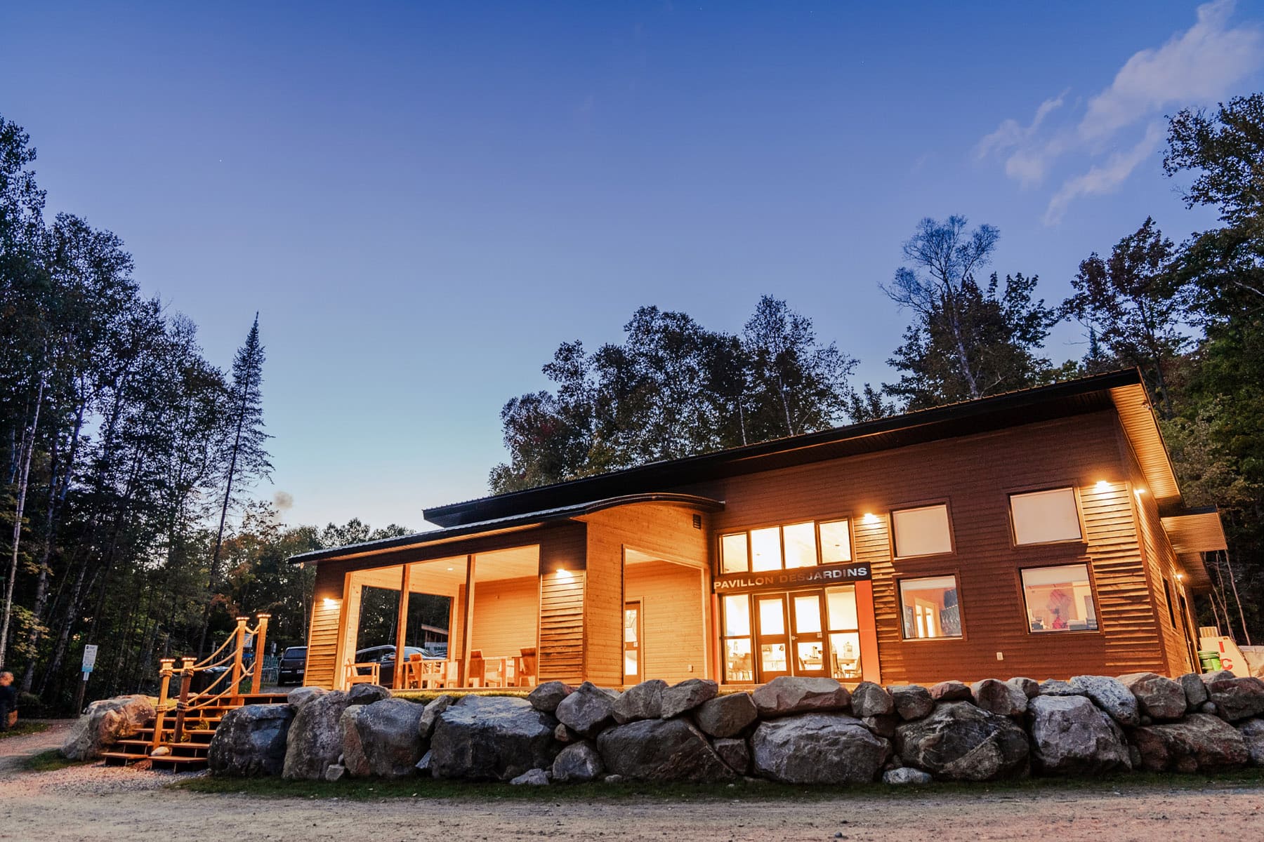 C’est dans ce décor naturel foisonnant que le Parc régional Montagne du Diable déploie son large éventail d’activités de plein air. En été, on part à l’assaut de près de 80 km de sentiers pédestres, on enfourche le vélo de montagne sur 35 km de sentiers de niveau débutant à expert, on pratique le canot, le kayak et la planche à pagaie (SUP) et les enfants profitent de deux circuits d’hébertisme. Dans ses quartiers d’hiver, le Parc régional Montagne du Diable ne fait pas seulement la joie des randonneurs en raquette, avec son réseau de 80 km. Il offre également 42 km de sentiers pour le ski de fond, 55 km pour le ski nordique, de même que pour le ski Hok, tandis que 40 km sont dédiés au ski pas de patin. Le Parc offre aussi la possibilité d’expérimenter le fatbike et de prendre des cours de ski, en plus de louer tout le matériel nécessaire à la pratique de ces activités estivales et hivernales. Pour prendre racine au Parc régional Montagne du Diable et profiter de tout ce qu’il a à offrir, chaque secteur dispose d’un choix d’hébergements : des chalets nature pouvant accueillir jusqu’à 10 personnes dans le secteur Village des Bâtisseurs ainsi que des emplacements de camping rustique ; des refuges en bois rond et des abris sur les différents versants du secteur Montagne (camping rustique également) ; et le prêt-à-camper en majesté dans le secteur Lac et Chute Windigo, avec des micro-refuges et des mini-maisons blottis dans la forêt, sans oublier deux « Lean-to » (petits refuges en bois) érigés au bord du lac Windigo, et le camping avec ou sans services.